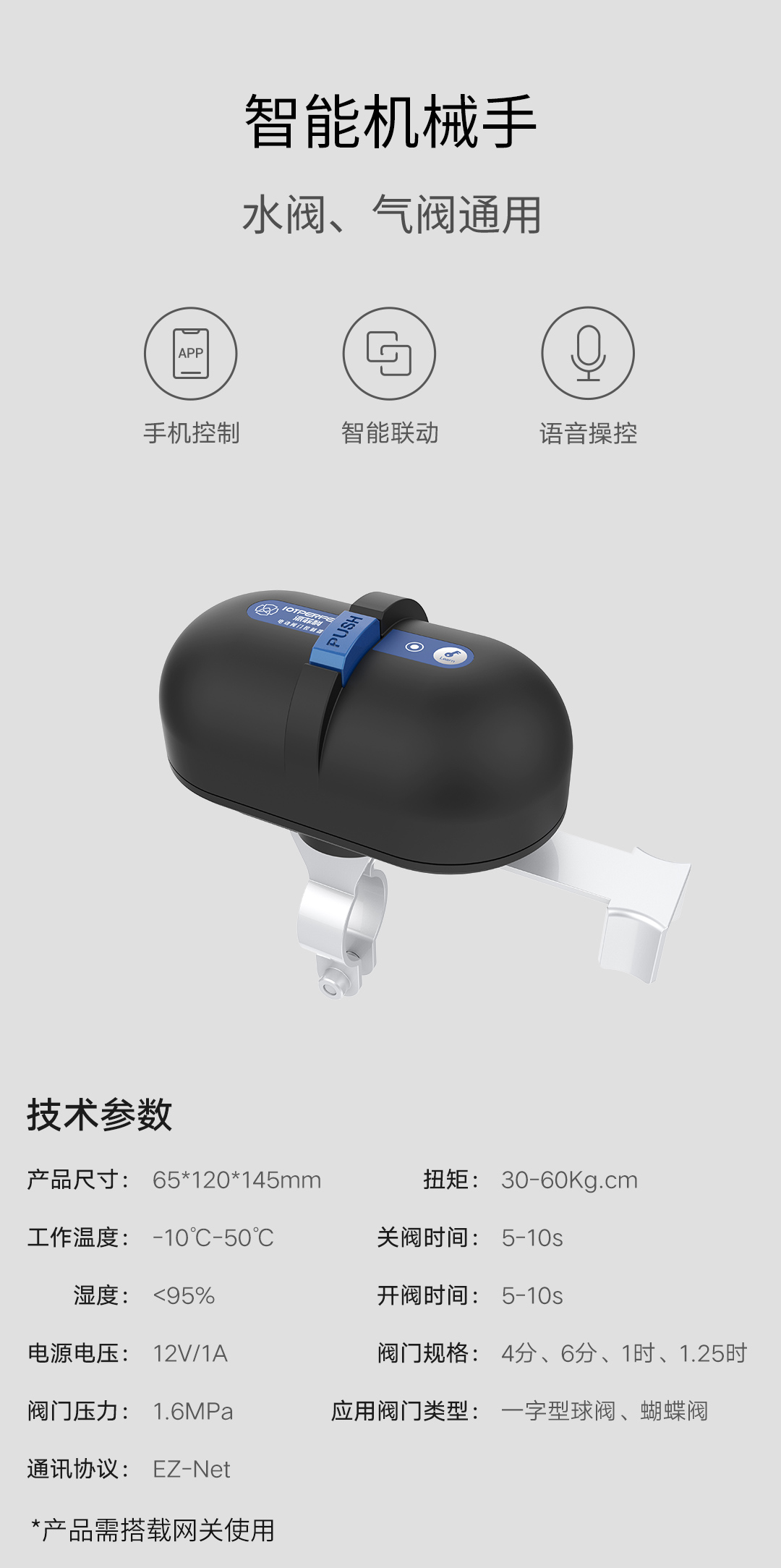 不用擔(dān)心,廣東智匯云科技有限公司(下稱:智匯云)幫你解決!智匯云智能機(jī)械手,將AI、物聯(lián)網(wǎng)等前沿技術(shù)引入閥門安全領(lǐng)域,具有靈敏度高、穩(wěn)定可靠、使用方便等特點(diǎn),適用于廚房、餐飲、危險(xiǎn)品倉(cāng)庫(kù)等存在隱患的場(chǎng)所。支持智能聯(lián)動(dòng),可以實(shí)現(xiàn)主動(dòng)安全防護(hù)。一旦出現(xiàn)意外,不僅能遠(yuǎn)程推送告警消息,還可以聯(lián)動(dòng)其他智能產(chǎn)品,關(guān)閉燃?xì)?水管的閥門。