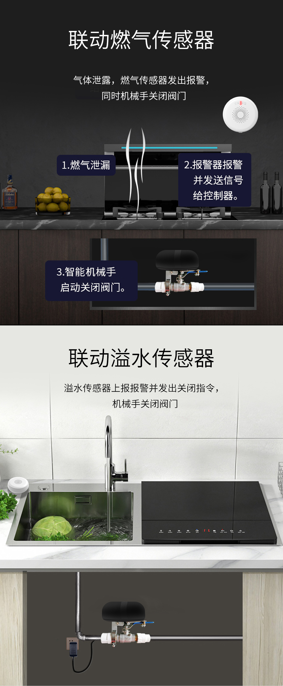 或是,聯(lián)動(dòng)溢水傳感器,溢水傳感器上報(bào)報(bào)警并發(fā)出關(guān)閉指令,機(jī)械手關(guān)閉閥門。