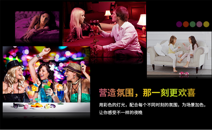 看電影的時(shí)候,情侶間約會(huì)的時(shí)候,朋友間聚會(huì)的時(shí)候,開香檳開part的時(shí)候,或者是一個(gè)人在家的時(shí)候,都可以根據(jù)你的場(chǎng)景來調(diào)節(jié)多種顏色