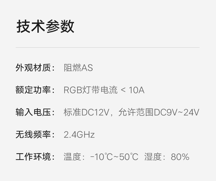 搭配RGB燈帶和變壓器使用,可調(diào)節(jié)多種燈光色彩;