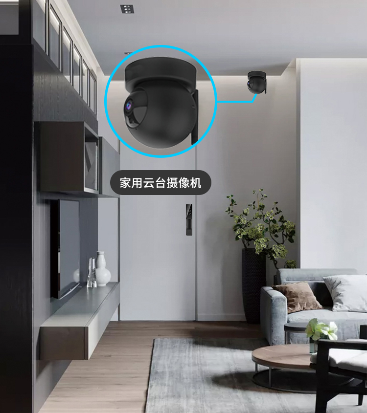 家用云臺(tái)攝像機(jī),可通過手機(jī)APP遠(yuǎn)程調(diào)節(jié)云臺(tái)和鏡頭,隨時(shí)觀察大門處的影像和居家動(dòng)態(tài)。內(nèi)置紅外傳感器,感應(yīng)特定區(qū)域移動(dòng)的人體,布防后發(fā)現(xiàn)闖入者,發(fā)送報(bào)警信號(hào)。