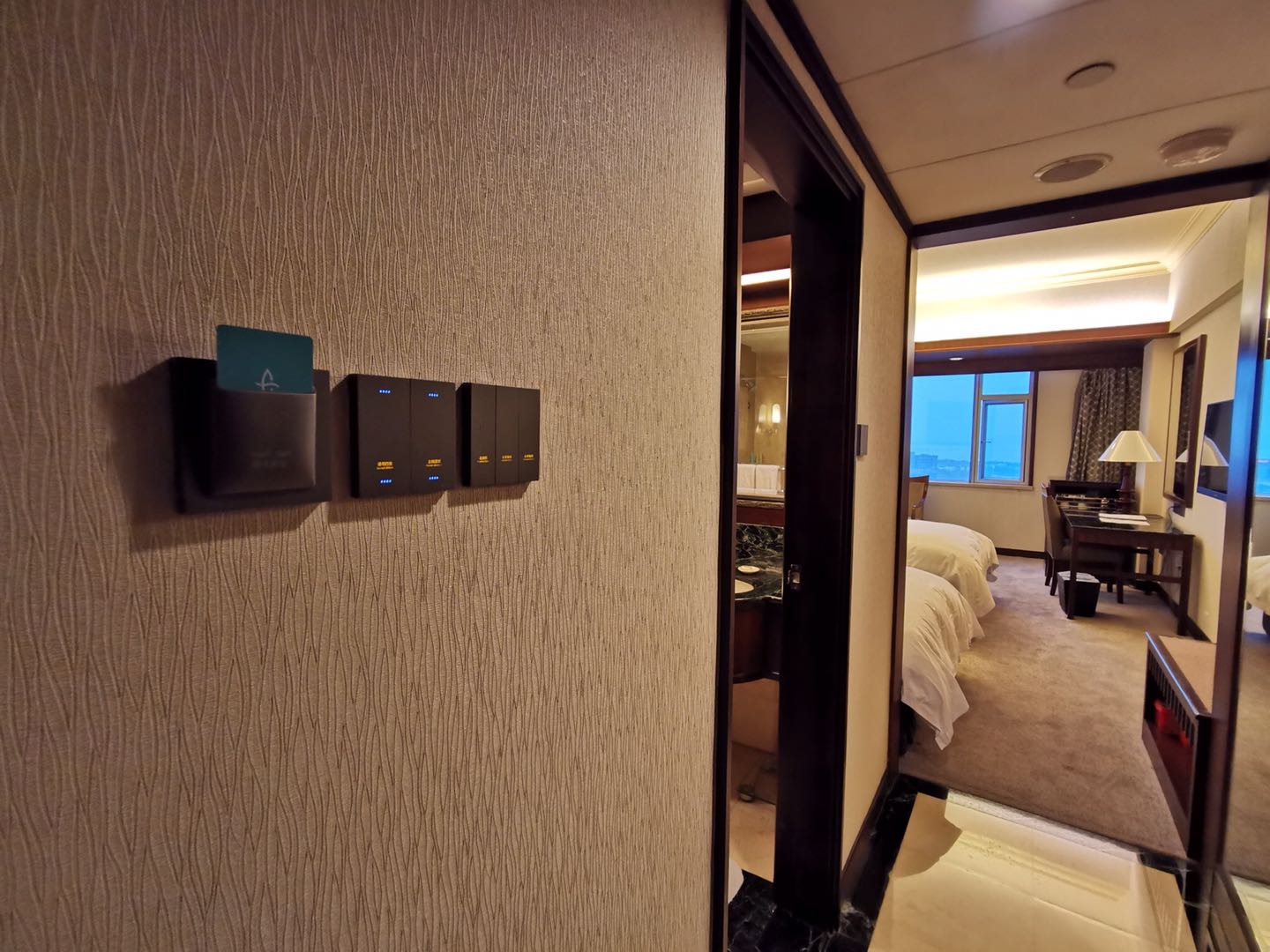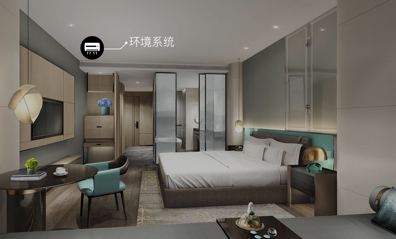 住客打開房門后,廊燈自動點(diǎn)亮,電視可設(shè)置為自動開啟,新風(fēng)系統(tǒng)啟動,開啟空調(diào),溫馨滿滿的歡迎客人入住。