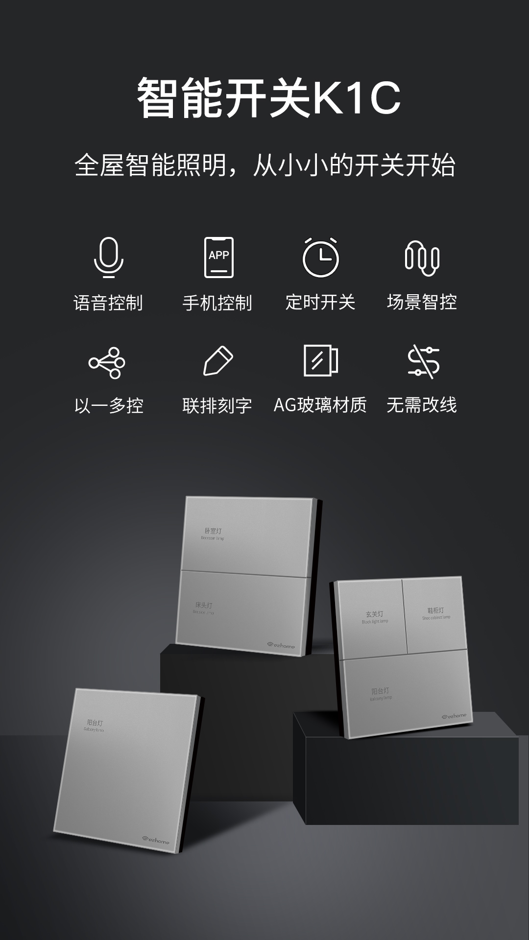 開關燈無需來回跑,普通燈具變智能,智匯云K1C系列智能開關打破了傳統(tǒng)開關的限制,進一步豐富全屋智能智能生活。