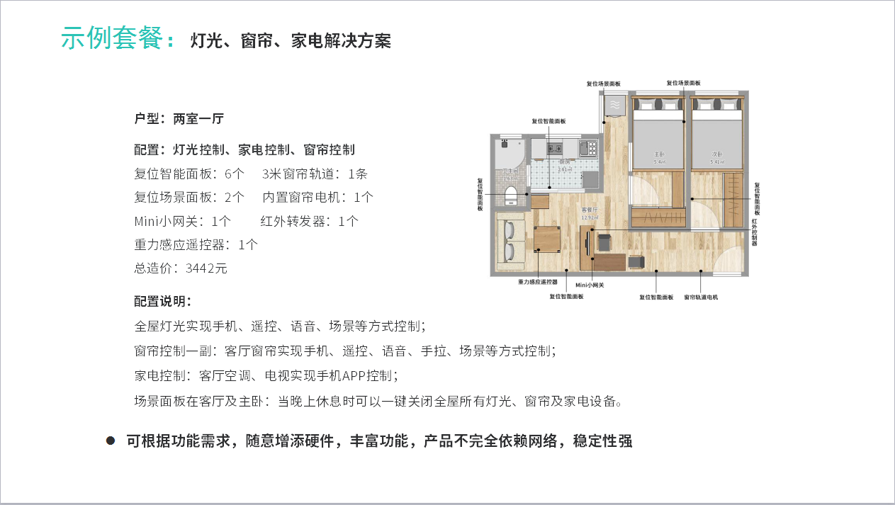 1. 智匯云智能家居能夠以較低的成本讓精裝房實(shí)現(xiàn)燈光、家電、窗簾等功能的智能化;