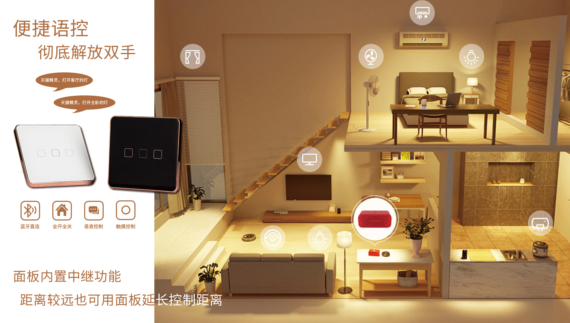 通過語音指令即可控制面板的開關(guān)操作。