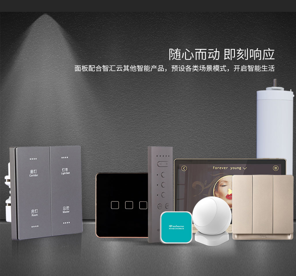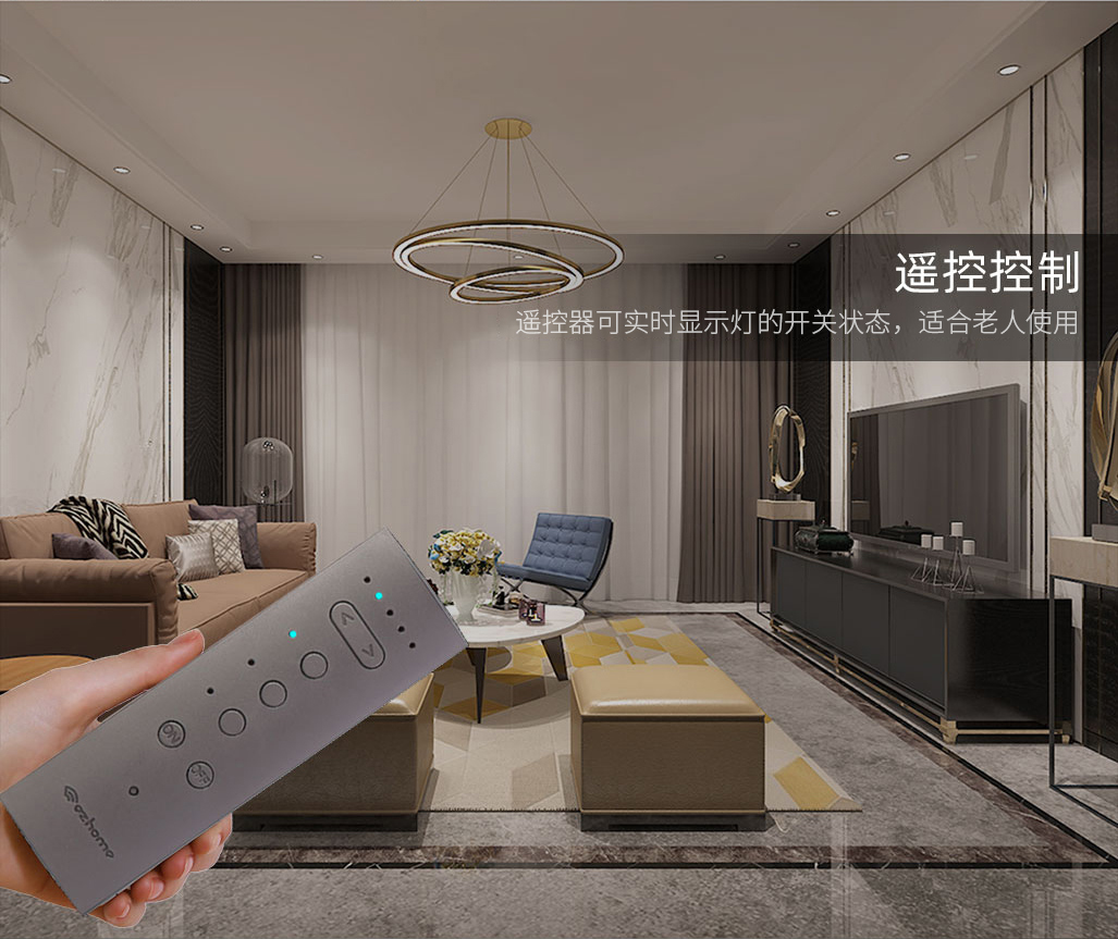 遙控控制:搭配智匯云重力感應(yīng)遙控器,遠程控制面板開關(guān),實時顯示開關(guān)狀態(tài)。