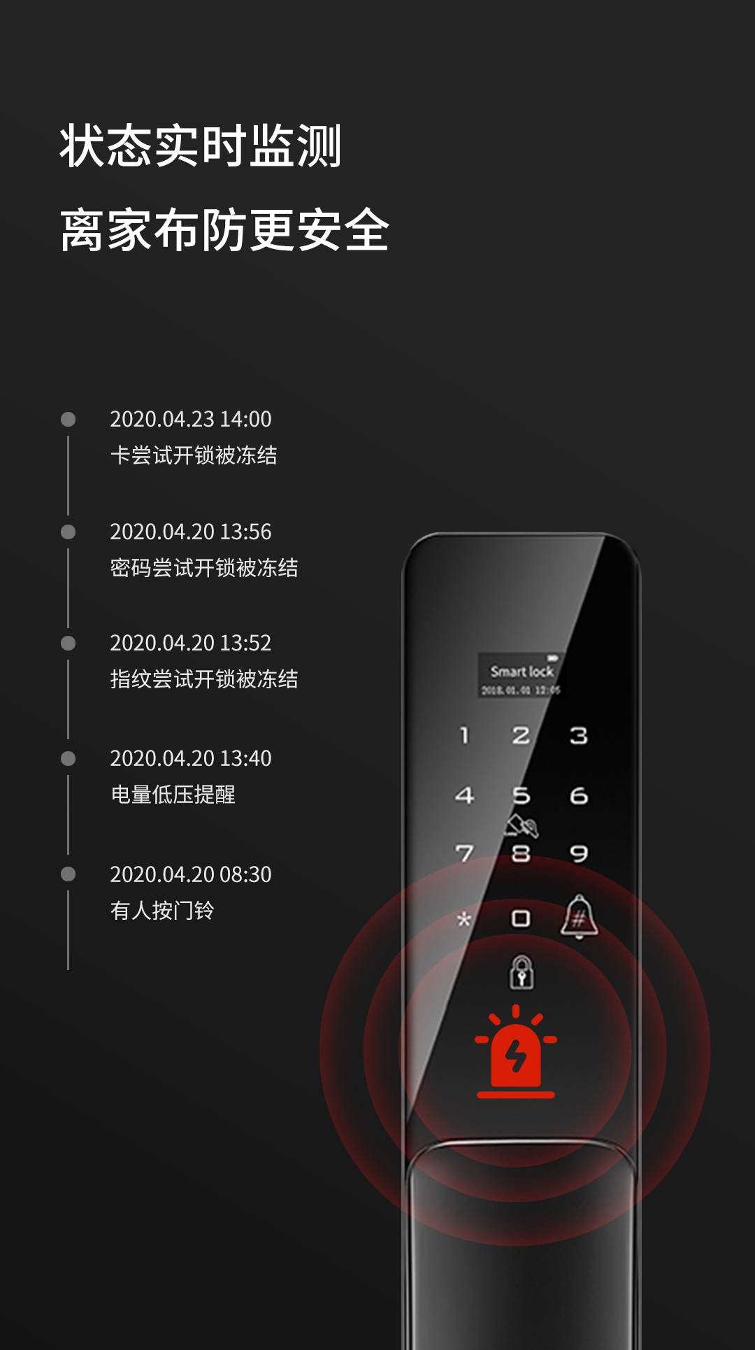 門鎖具有訪客記錄、推送信息的功能,這樣即便是出門在外也可以隨時查看訪客數(shù)據(jù),對自己家了若指掌。