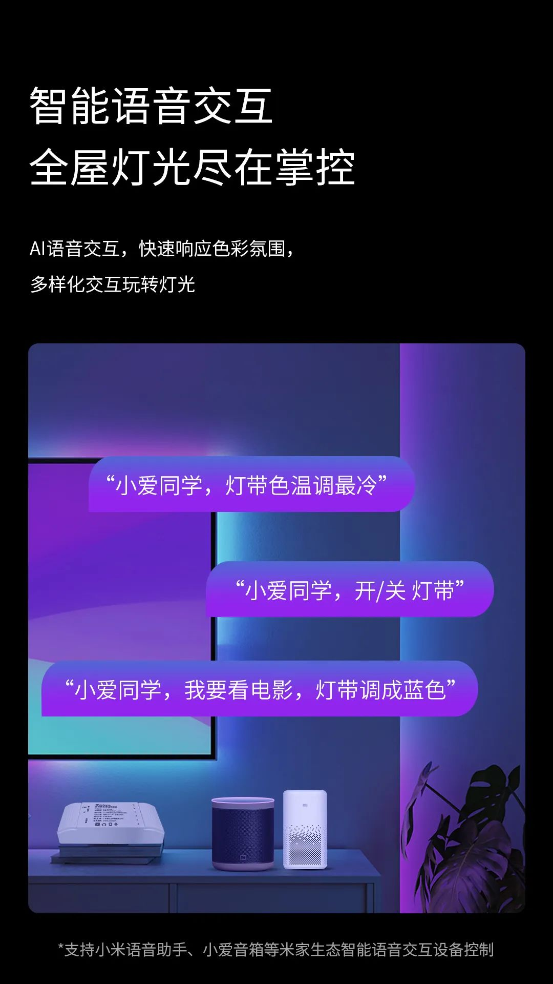 用戶通過米家APP,可以遠(yuǎn)程操控和智能家庭聯(lián)動(dòng),實(shí)現(xiàn)對燈光漸明漸暗、無極亮度色溫的調(diào)節(jié)、萬千色彩等萬種豐富的調(diào)光效果。