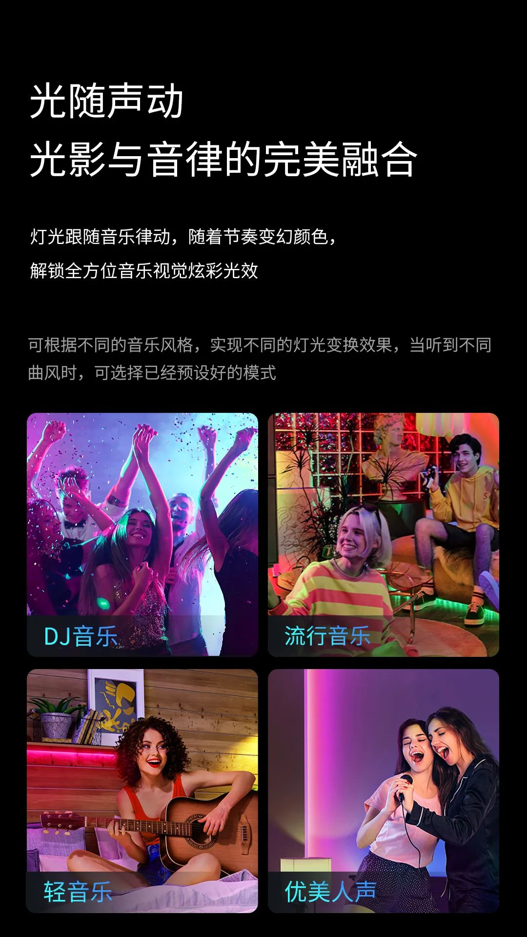 除了音樂律動(dòng)、冷暖模式、彩光模式三種功能模式,新品還加入了多種預(yù)設(shè)情景模式,讓燈光讀懂你的心情。