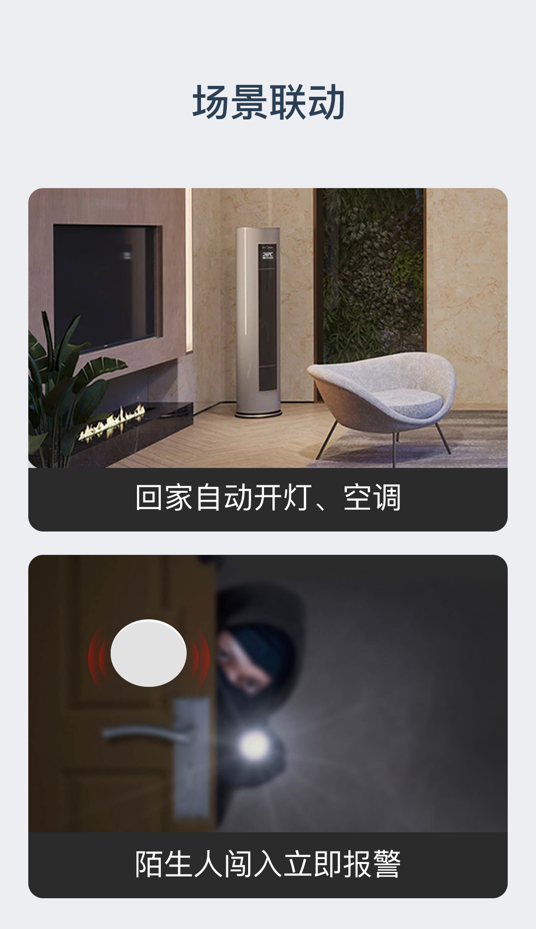 離家后,自動開啟布防模式,當(dāng)有陌生人闖入時,立即上報警告信息,保障家居安全,出門在外也不必時時擔(dān)心家里的安全狀況。