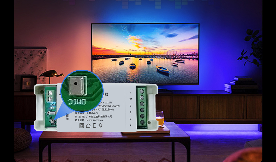 和大部分只能控制燈光冷暖色溫或RGB調(diào)色的調(diào)光模塊不同,本產(chǎn)品的最大亮點(diǎn)是支持“音樂(lè)律動(dòng)”功能,通過(guò)控制器內(nèi)置的微型麥克風(fēng)智能拾音,對(duì)聲音更加靈敏,光隨聲動(dòng)。