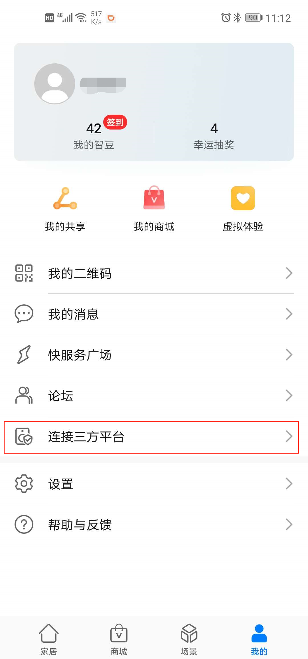 第一步:打開“華為智慧生活”APP,登陸并選擇鏈接第三方平臺(tái)。