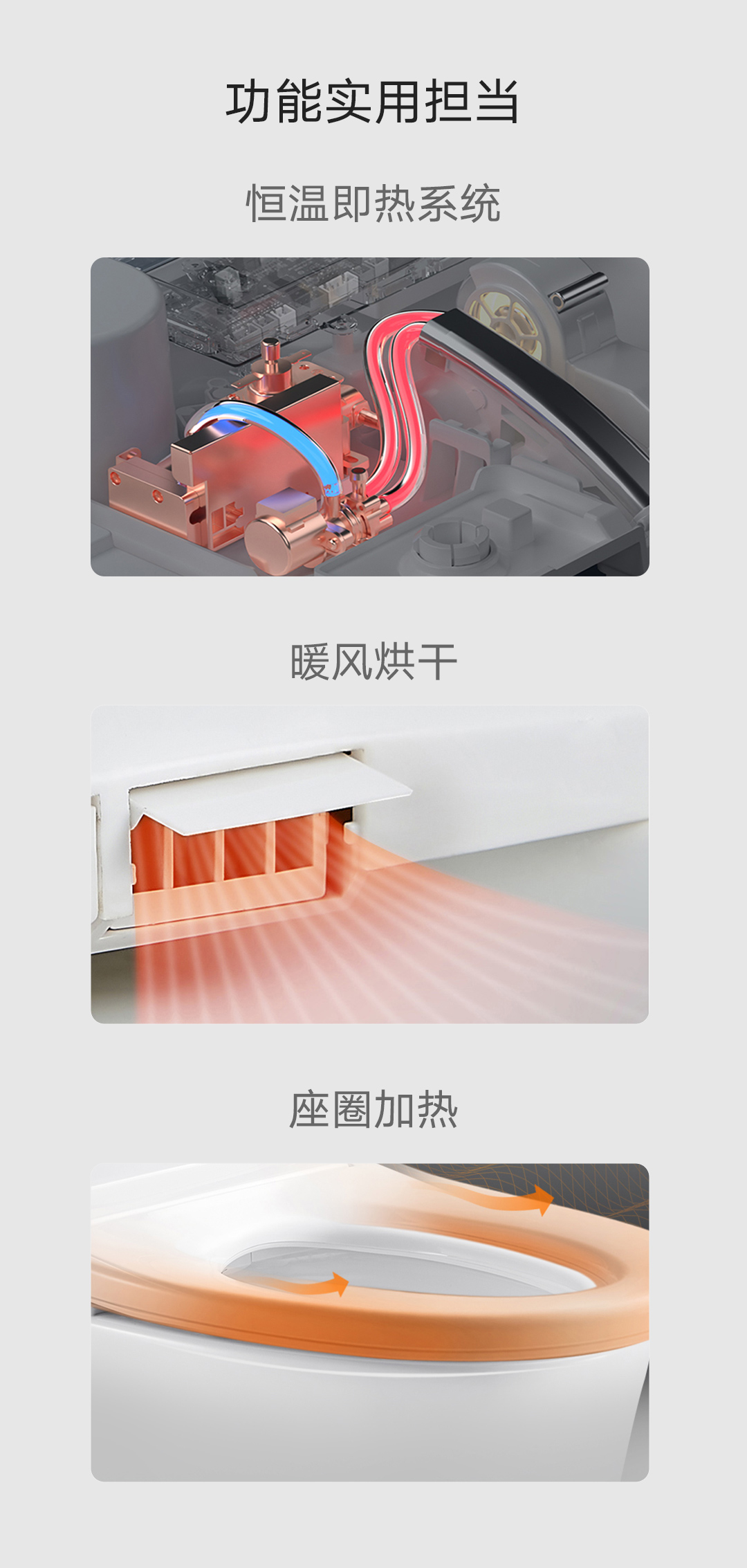 座圈加熱,肌膚觸感更溫和。智能恒溫座圈,無懼冰冷,著坐舒適,愜意享受。