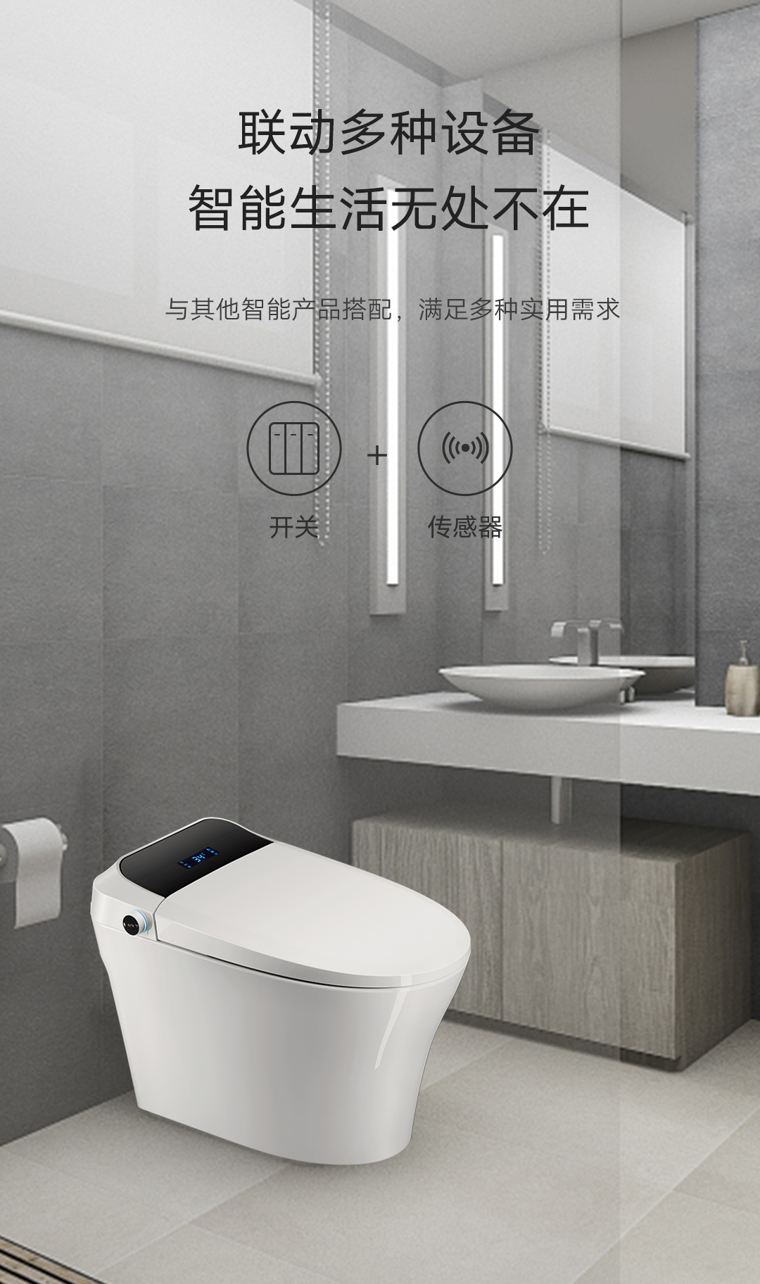 用戶在使用智匯云智能馬桶的同時亦可同步聯(lián)動開啟或關(guān)閉全屋衛(wèi)生間的照明或者通風(fēng),例如實現(xiàn)人坐下,一鍵聯(lián)動打開燈光、關(guān)閉窗簾等,帶來更便捷的智能家居體驗。