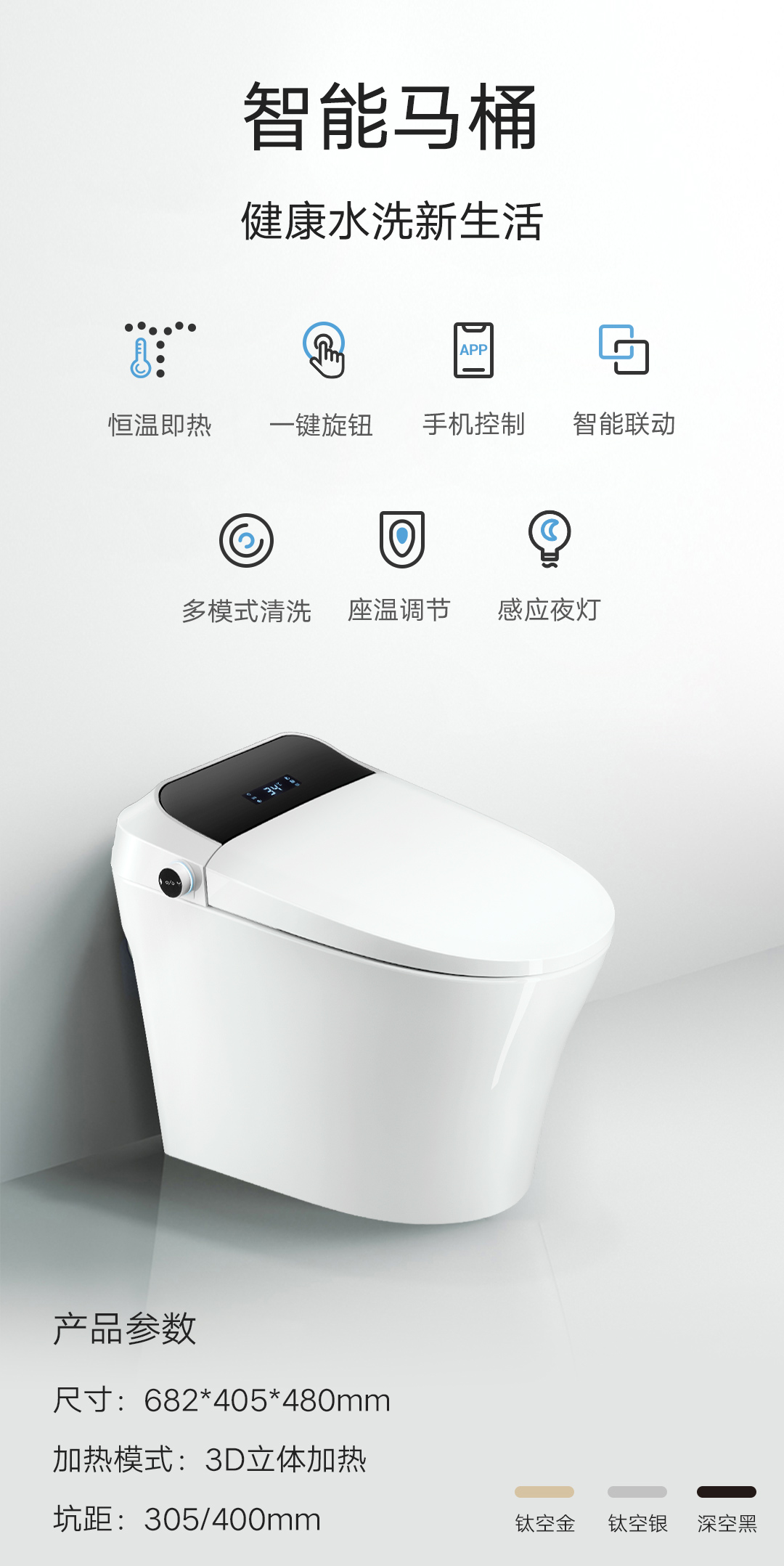 除了功能、價格的不同,智能馬桶與智能馬桶蓋一個很大的區(qū)別就是:智能馬桶一體式的拆裝,適合新裝修或者想要替換原有馬桶的人。如果對如廁有更高的追求、預(yù)算又充足的話,那么可以考慮設(shè)計美觀、功能齊全、顧客滿意度高的智匯云智能馬桶。