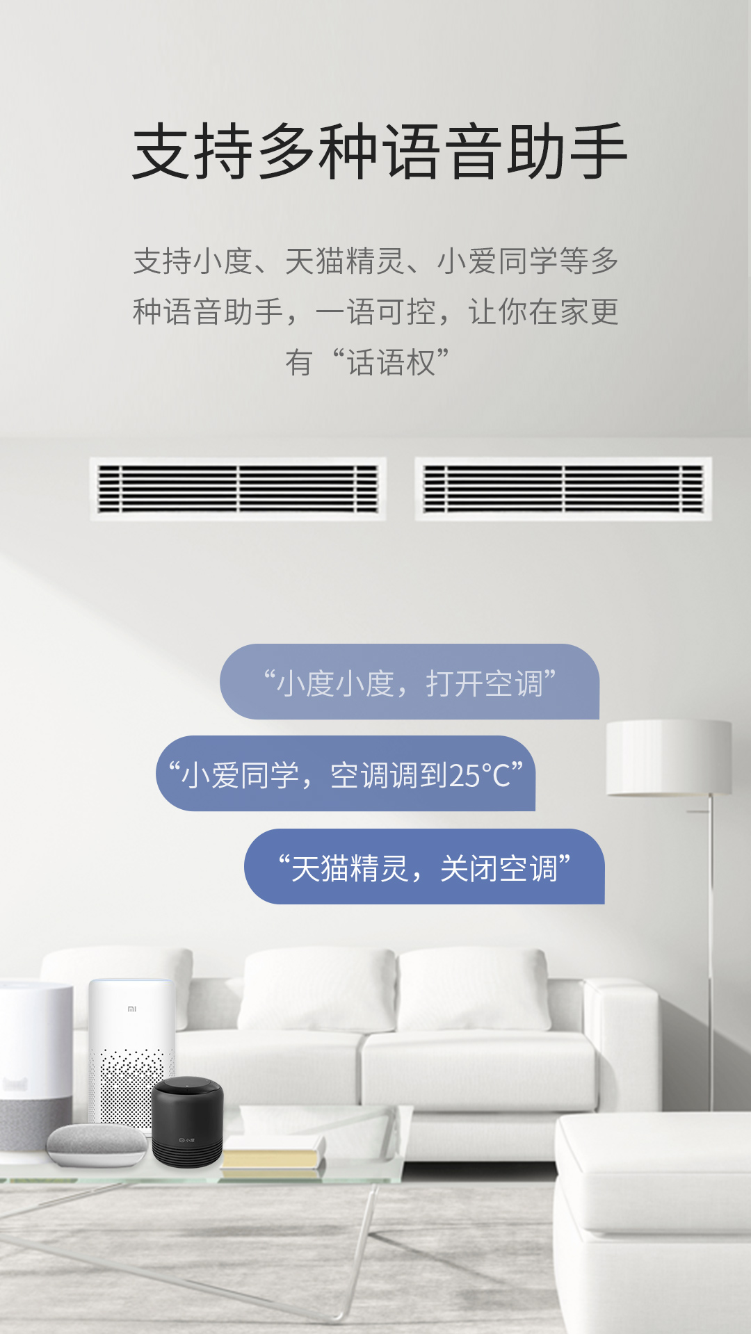 中央空調(diào)智能網(wǎng)關(guān)支持小度、天貓精靈、小愛同學(xué)等多種語音音箱的控制,想開空調(diào)或是空調(diào)想調(diào)到幾度,一句話搞定。
