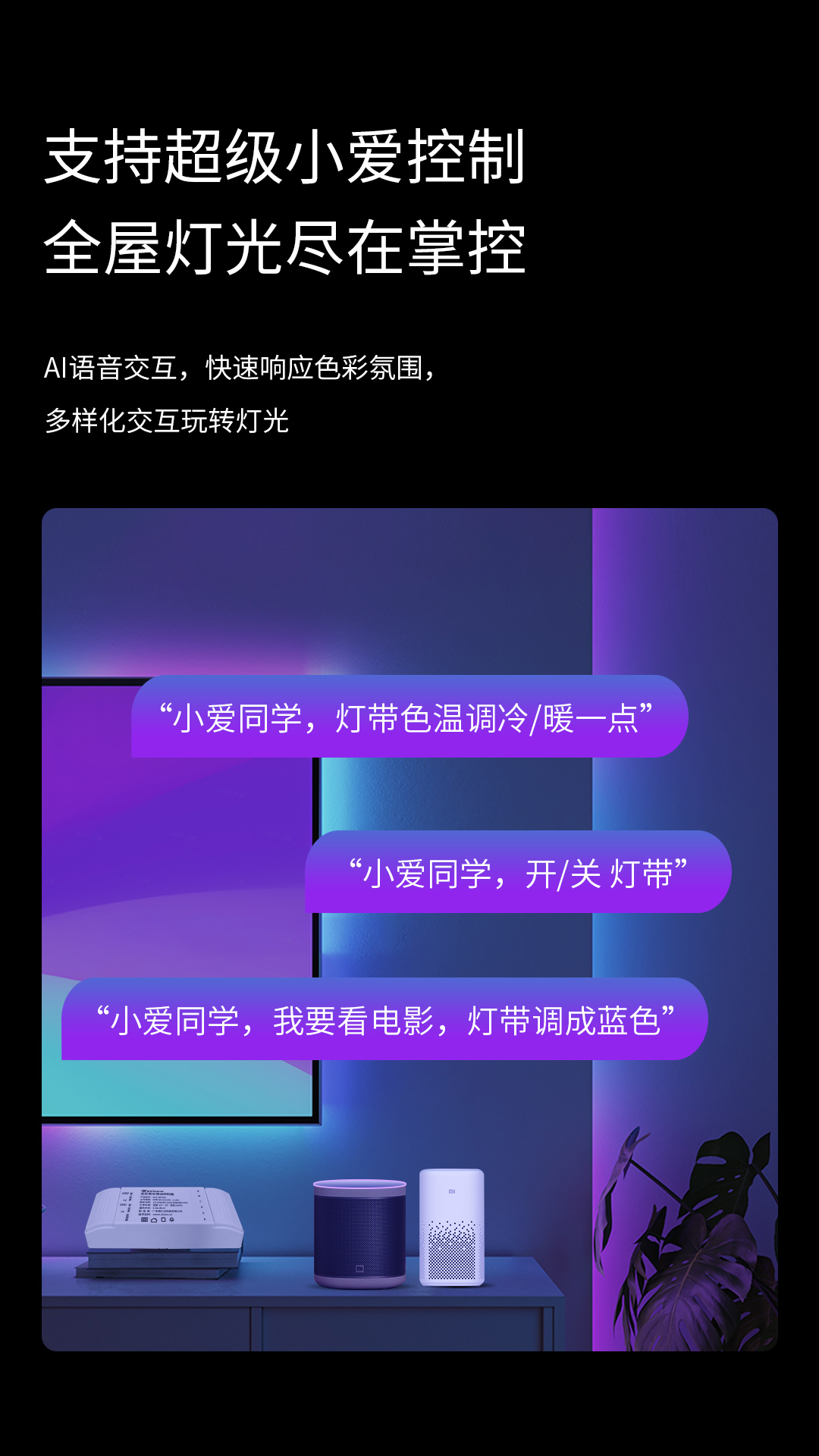 當(dāng)切換為“全彩模式”時(shí),全色域1658萬色隨心調(diào)節(jié),帶給你飽滿、真實(shí)的色彩呈現(xiàn),讓你的家居環(huán)境變得更有格調(diào)。