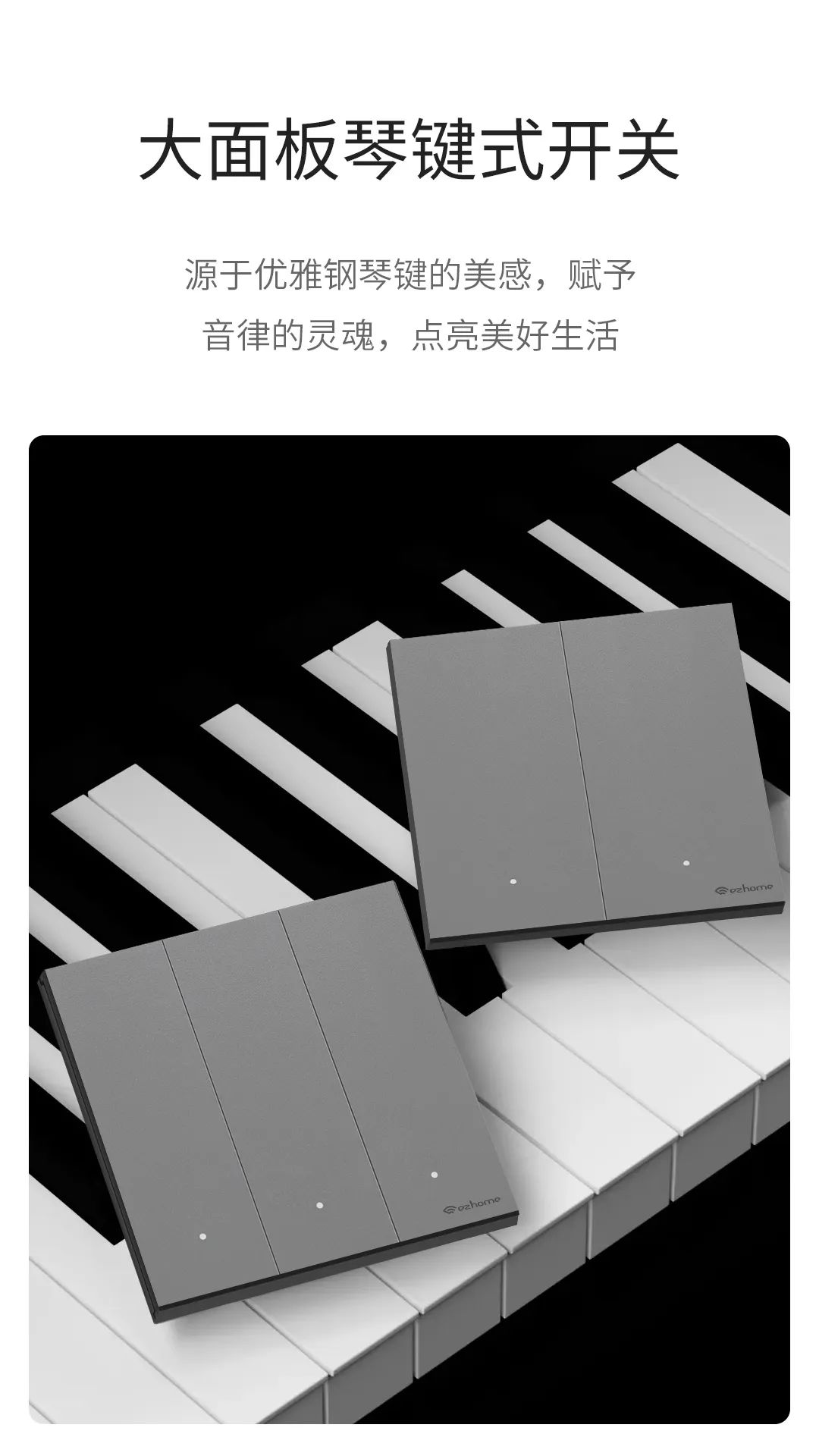 開關(guān)外觀設(shè)計(jì)突破傳統(tǒng),琴鍵式按鍵結(jié)構(gòu)設(shè)計(jì),創(chuàng)作靈感來源于優(yōu)雅鋼琴鍵的美感,賦予音律的靈魂。