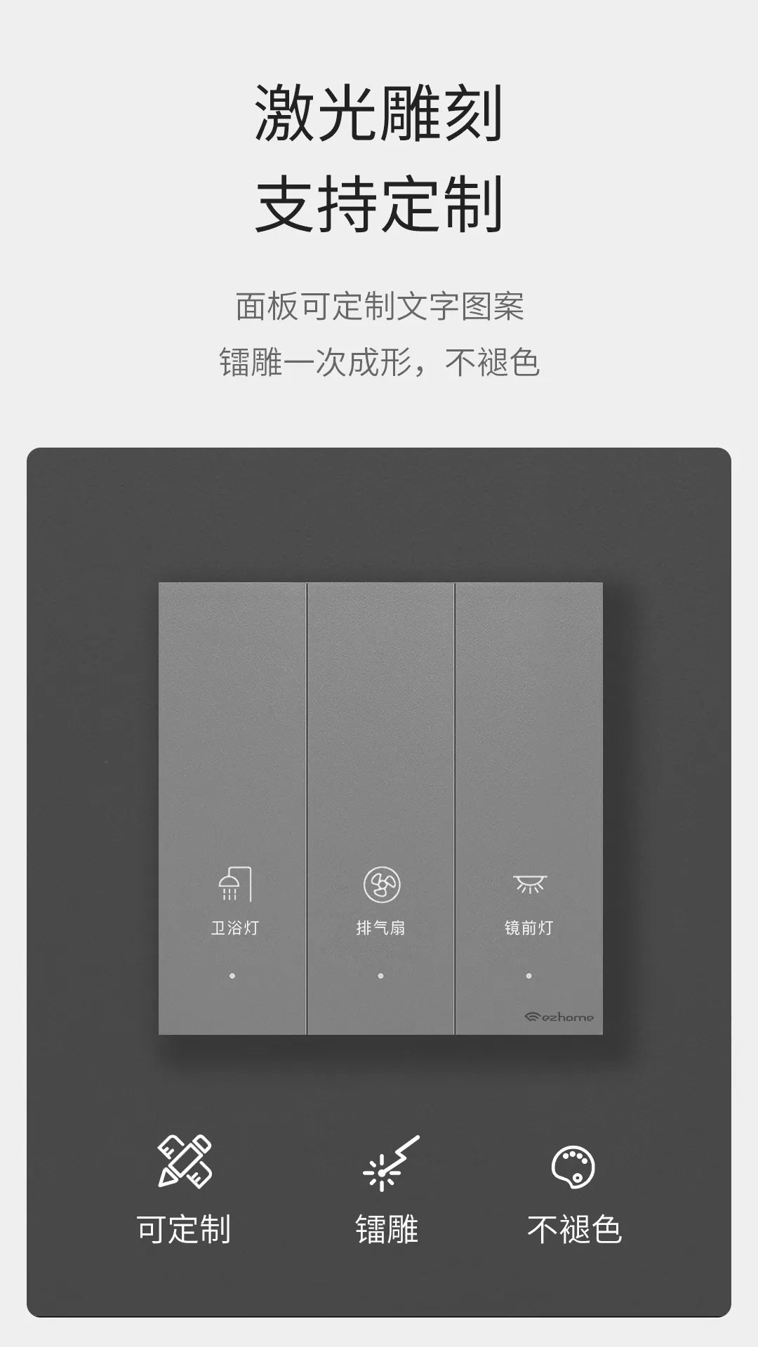 多聯(lián)面板隨心定義、選擇豐富,墻面整潔簡練,賞心悅目。支持個(gè)性化定制刻字,告別千篇一律,為家創(chuàng)造無限可能。