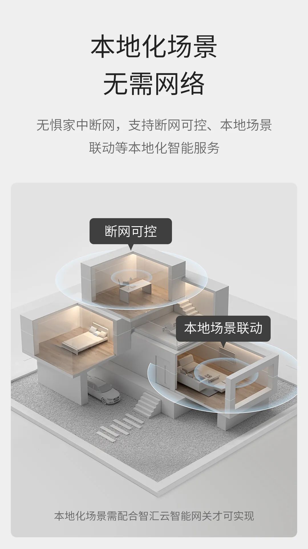 沿襲了智匯云“離線本地化控制”技術(shù)的優(yōu)勢,智能開關(guān)A1同樣具有本地自組網(wǎng)功能,讓設(shè)備在斷網(wǎng)、系統(tǒng)脫離云端服務(wù)時(shí),依然能夠正常運(yùn)行,且響應(yīng)速度敏捷無卡頓。