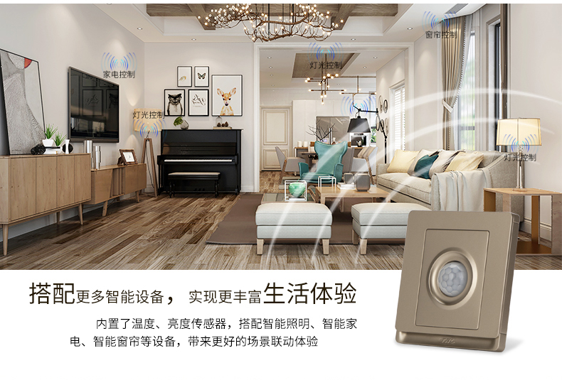 可以安裝上一個(gè)傳感器,在人經(jīng)過時(shí)可以自動(dòng)開啟關(guān)閉,或是調(diào)節(jié)燈光亮度。若有安防需求,還可設(shè)置傳感器啟用安防狀態(tài)。