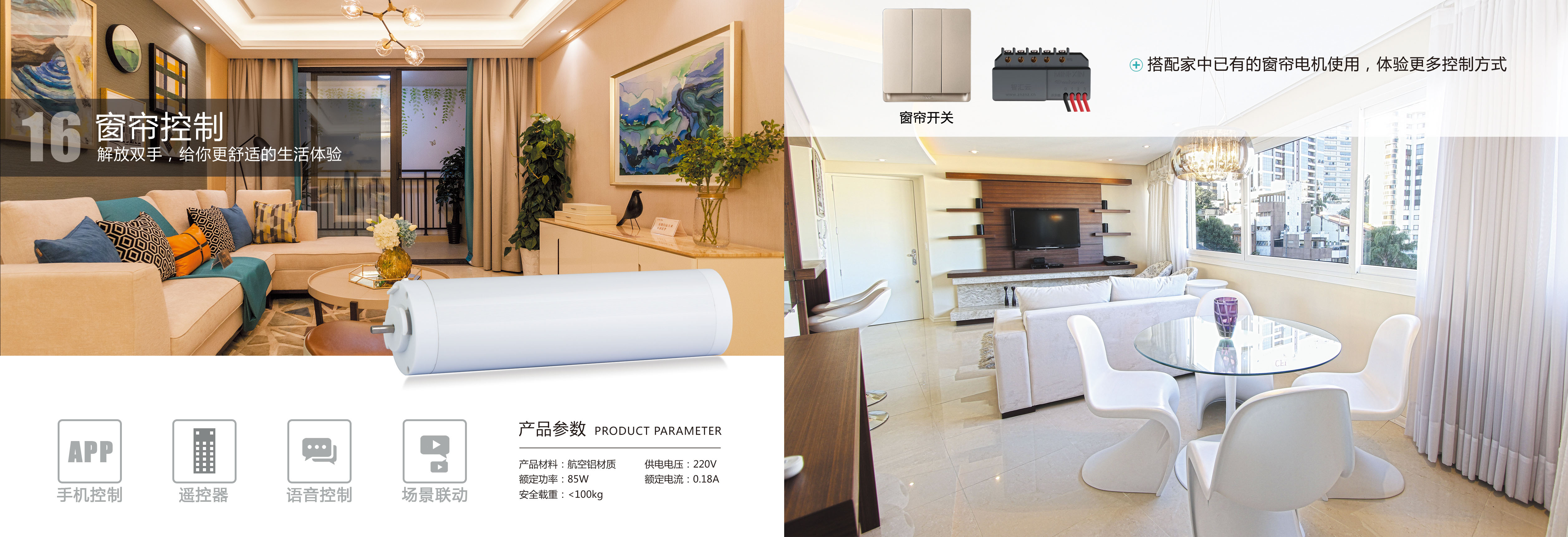 需要在窗簾位置上預(yù)留安裝窗簾盒的寬度,單層軌道需要至少12cm,雙層軌道至少20cm;附近的墻面上預(yù)留220V電源或是普通插座,供窗簾電機(jī)工作使用。智能窗戶控制,同理也需要在推窗器電機(jī)旁預(yù)留一個(gè)220V電源或是普通插座,智能窗戶控制支持平移和向外開窗兩種控制方式,所以也需要預(yù)留安裝推窗器或開窗器的寬度。
