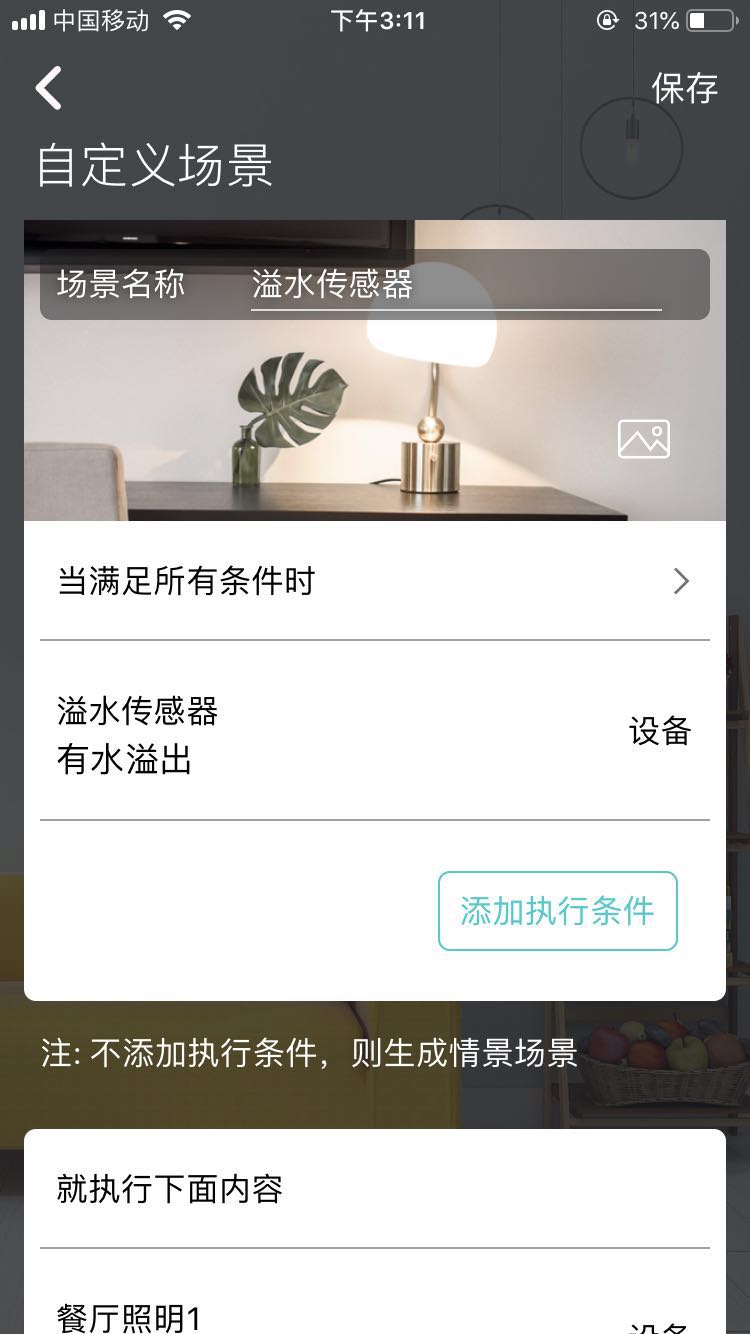 溢水傳感器可以在檢測到屋內水浸時,主動推送警報到手機APP,并聯(lián)動智匯云控制其他智能設備,及時關閉水閥。