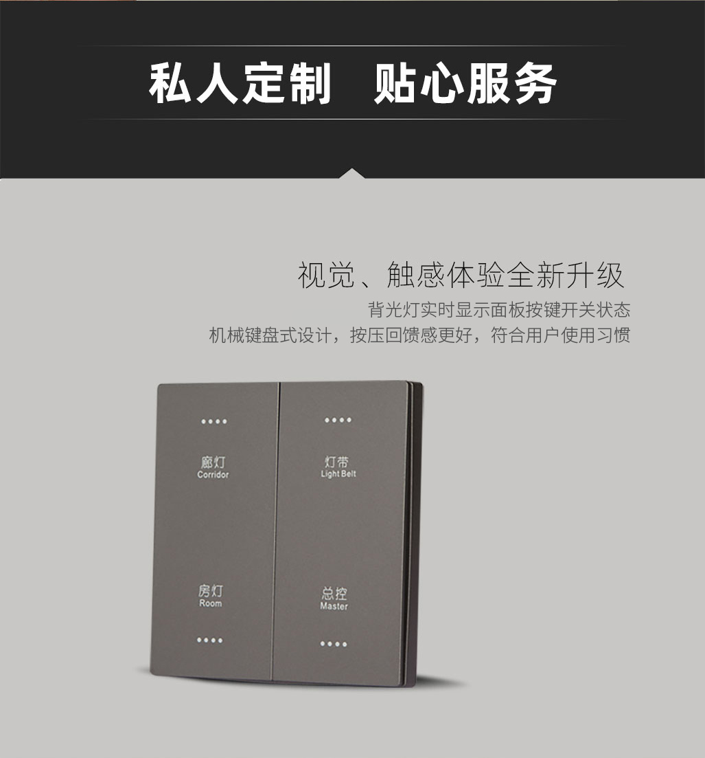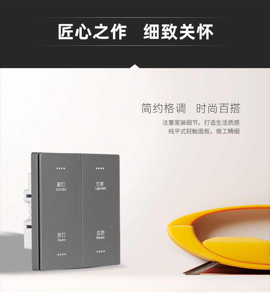 面板外觀簡約百搭,適合多種裝修風(fēng)格;按壓觸感回饋及時(shí),一觸即亮。