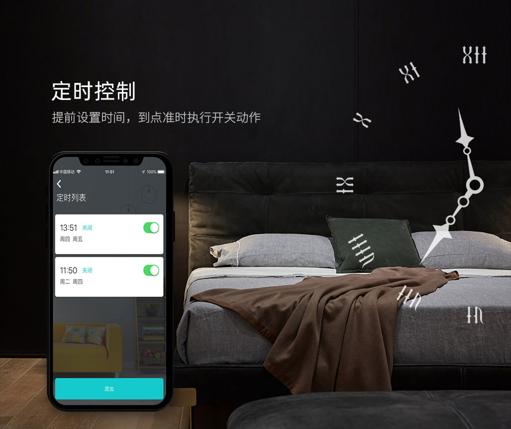 定時(shí)控制:可在手機(jī)APP提前設(shè)定面板開關(guān)執(zhí)行時(shí)間,到點(diǎn)準(zhǔn)時(shí)執(zhí)行開關(guān)動(dòng)作。