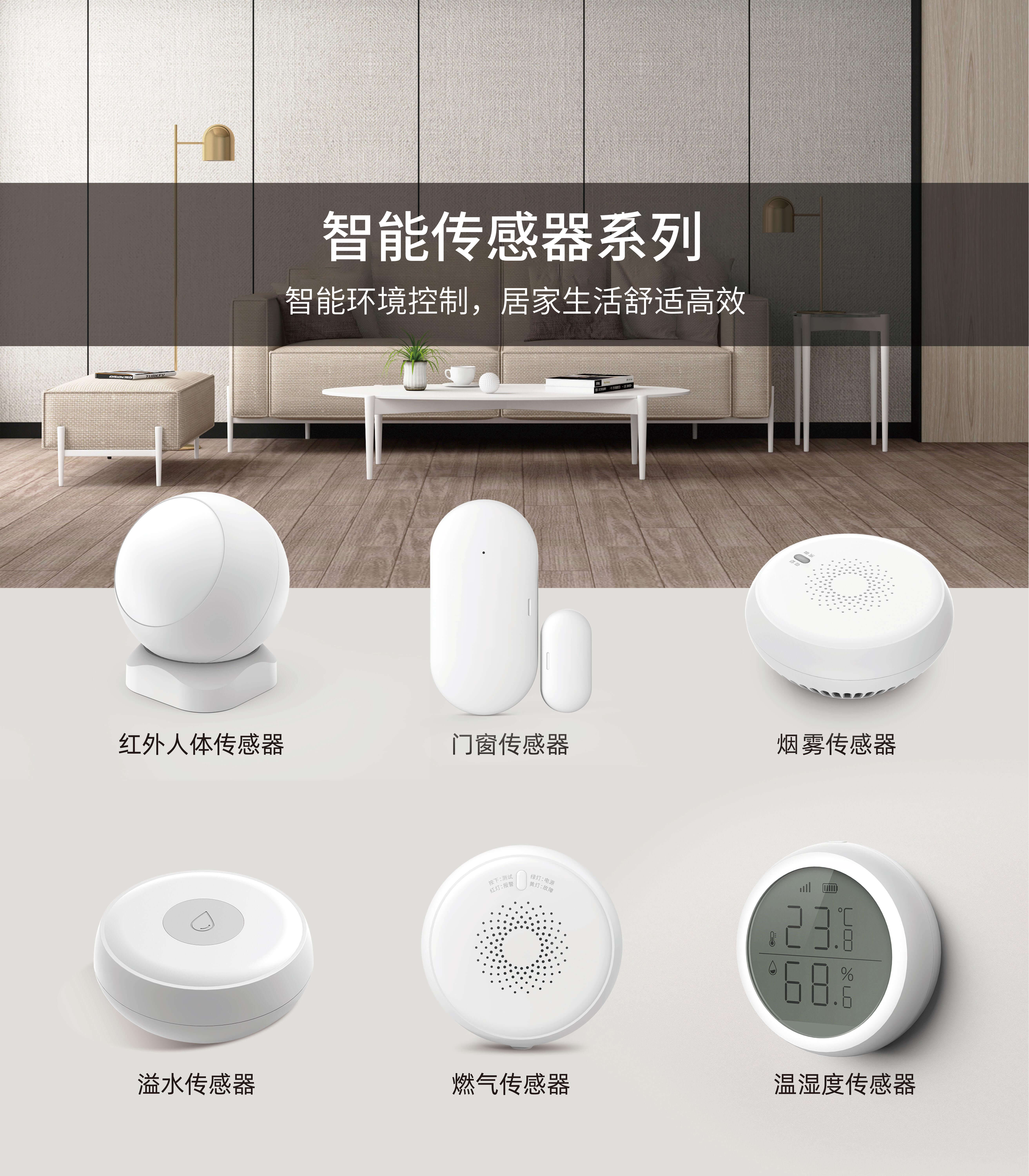 期間將會展示智匯云多款智能傳感器,包括門窗傳感器、溫濕度傳感器、溢水傳感器、燃氣傳感器、煙霧傳感器、人體紅外傳感器,還有緊急按鈕。這些傳感器可以實時檢測環(huán)境變化,觸發(fā)開啟相應(yīng)智能場景聯(lián)動控制,或是觸發(fā)報警主動上報給主機,并推送信息至用戶手機APP,便于及時處理,避免出現(xiàn)財產(chǎn)損失。