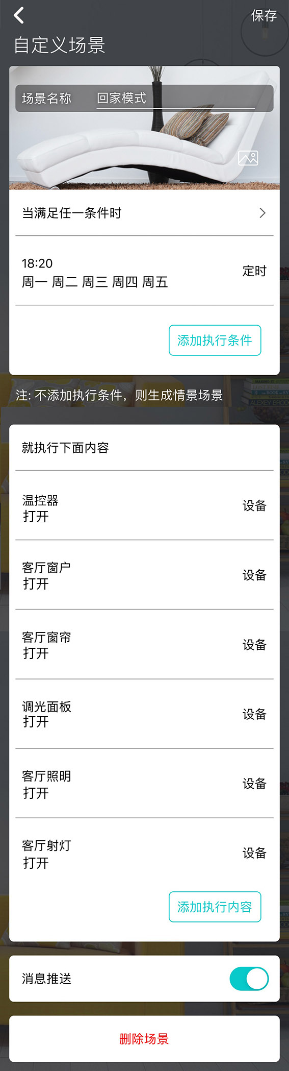 另外,智能溫控器可與其他智能家居設(shè)備實(shí)現(xiàn)場(chǎng)景聯(lián)動(dòng):