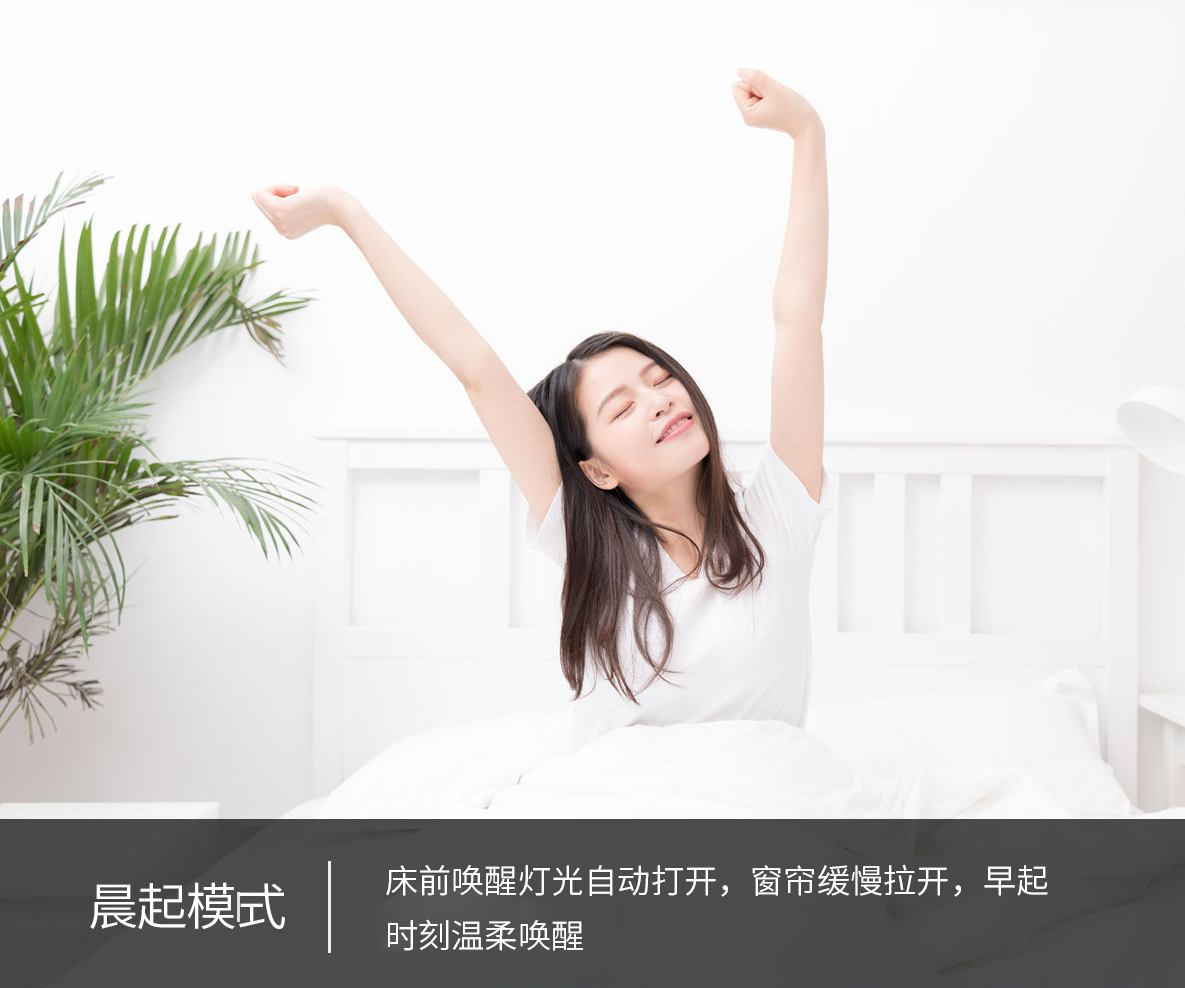 而此時(shí)智能家居的起床模式,就完全為你排憂解難;設(shè)定了起床時(shí)間后,到點(diǎn)執(zhí)行場(chǎng)景,床邊的智能窗簾緩緩拉開,背景音樂主機(jī)開啟悅耳的喚醒音樂,并在隨后的日常新聞播報(bào)聲中,完成起床之后的一系列動(dòng)作。