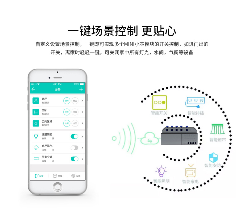 現(xiàn)在:客廳燈、廚房燈沒關(guān)沒關(guān)系,反正也躺在床上玩手機,隨手一按,就可搞定!老婆,看我?guī)洶桑?/span>