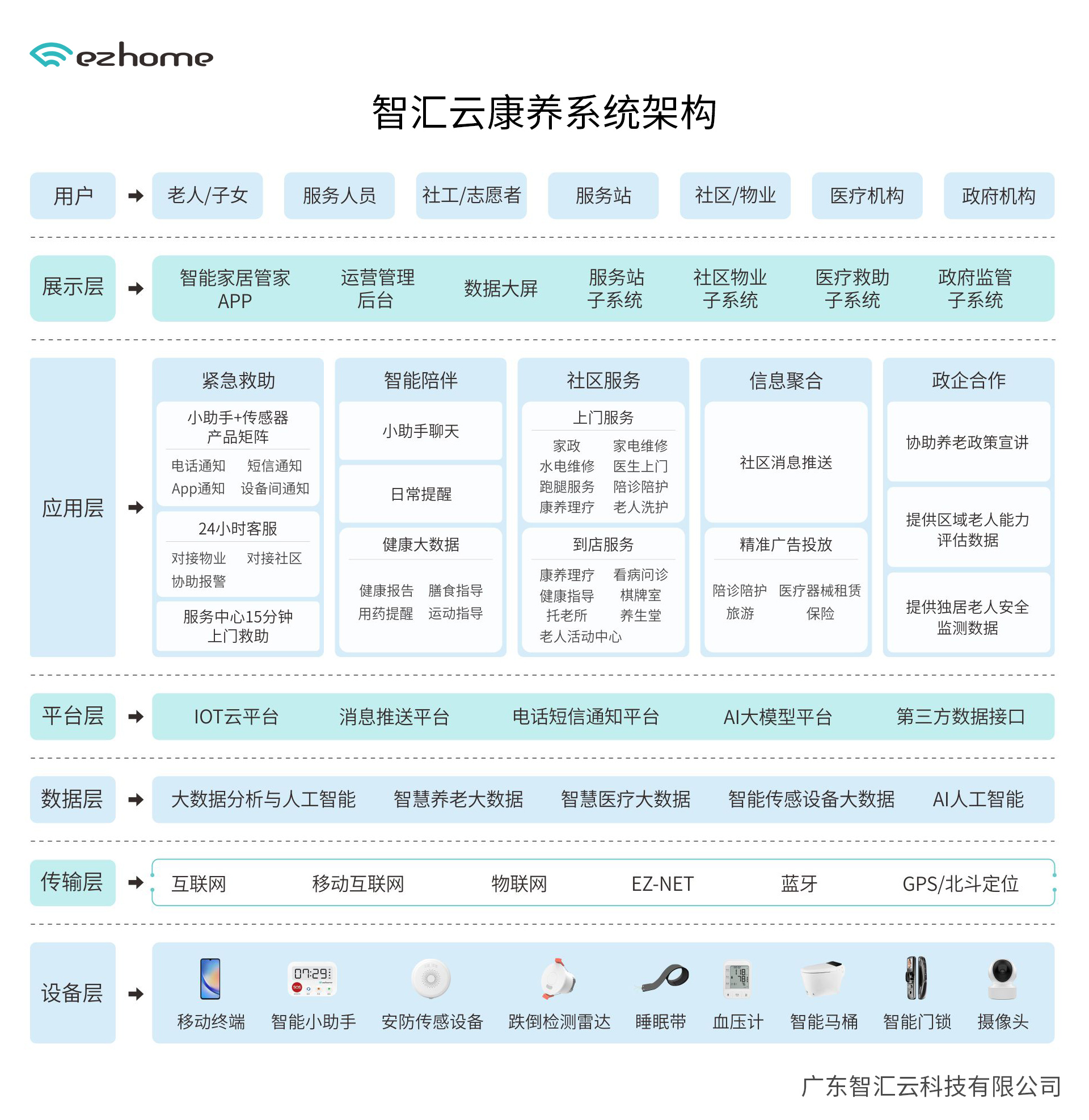智匯云科技提供覆蓋居家安全、健康管理、生活服務(wù)等多維度的產(chǎn)品矩陣,并支持與第三方康養(yǎng)平臺的深度集成與API對接: