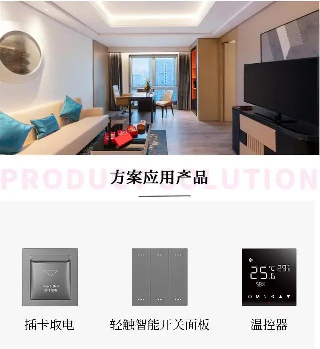 住客可以通過語音/面板按鍵/小程序控制酒店客房內(nèi)的燈光/窗簾/空調(diào)/電視等;輕觸床頭開關面板,隨心所欲一鍵切換明亮模式、閱讀模式、睡眠模式等智慧場景模式。
