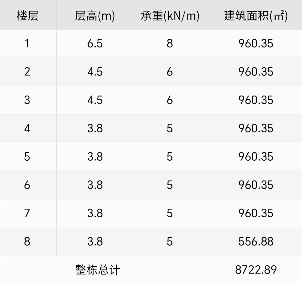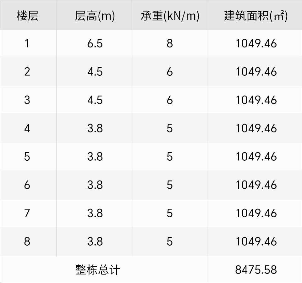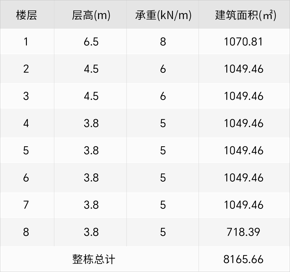 - 1-5棟為8層通用廠房共計(jì)42127.31㎡,廠房均高為 36.3m;其中 1棟建筑面積 9536.86 ㎡, 2棟建筑面積 8589.85 ㎡, 3棟建筑面積 7359.36 ㎡, 4棟建筑面積 8165.66㎡, 5棟建筑面積 8475.58 ㎡;